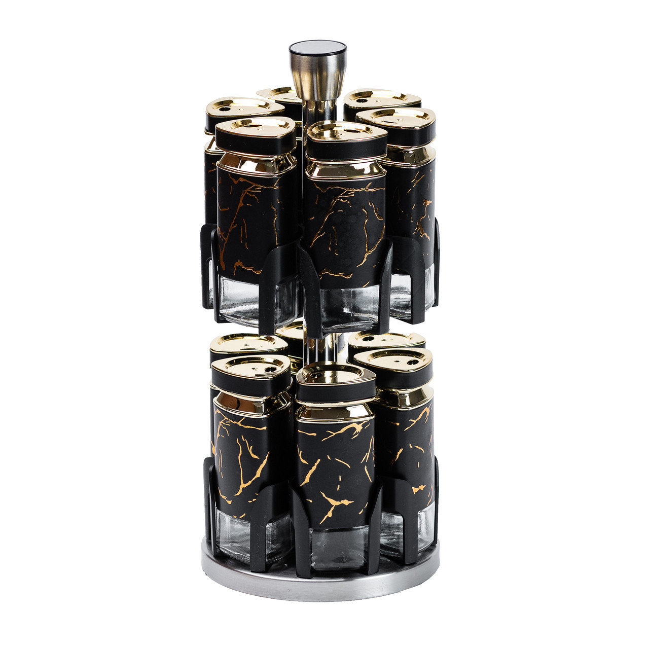 Набір для спецій на підставці 12 баночок по 120 мл, чорний мармур HP1356