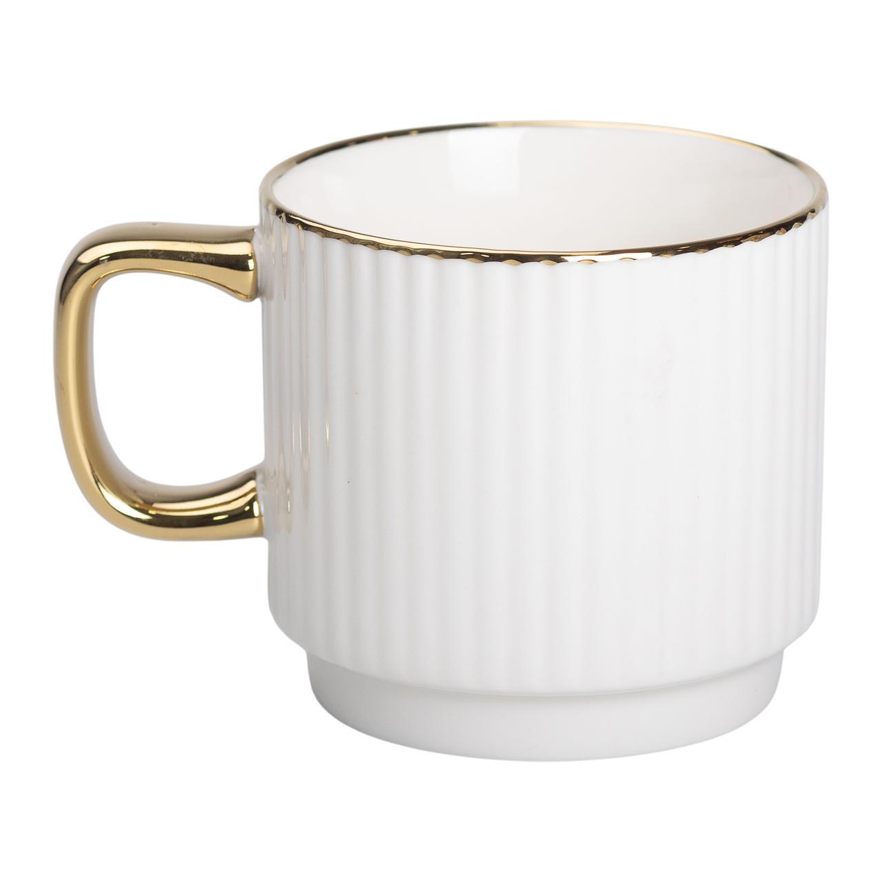 Чашка порцелянова із золотим обідком і золотою ручкою 300 (мл) Біла RX-N231129W